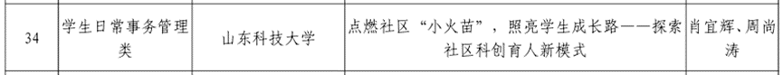 近期,山东省委教育工委公布2024年全省高校辅导员工作创新项目评选结果,学院教师肖宜辉、周尚涛撰写的《点燃社区“小火苗”,照亮学生成长路——探索社区科创育人新模式》荣获二等奖。