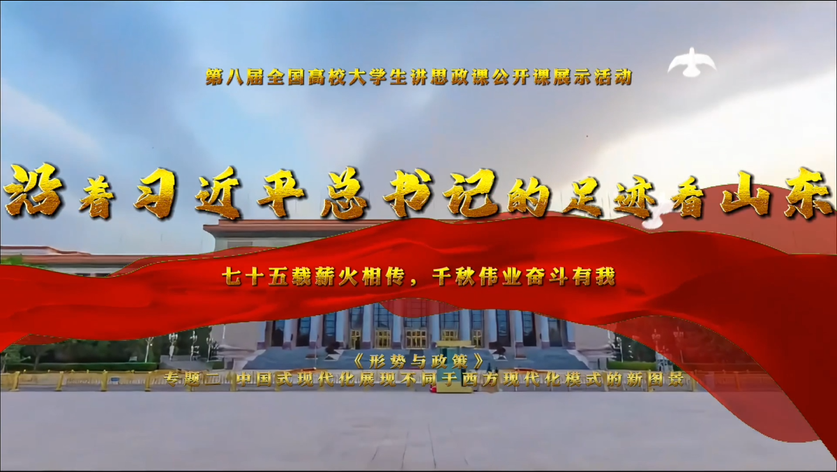 近日,由教育部主办的“七十五载薪火相传,千秋伟业奋斗有我”第八届全国高校大学生讲思政课公开课展示活动评审结果公布,成人电影 报送的作品《沿着习近平总书记的足迹看山东》(指导老师:陈军涛、王建志、宋婷婷)荣获本科组全国二等奖,实现学校在该项活动中成绩新突破。