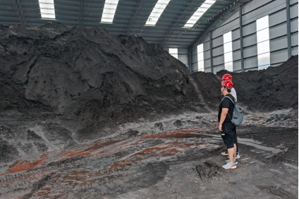 经过球磨机研磨等步骤,铁矿石最终变成了可供钢厂用作原材料的铁精粉,在销售出去以前,铁精粉都被保存在一个巨大的封闭仓库中。工作人员介绍说之前没有仓库,铁精粉都是露天的堆在空地上,一旦下雨就会被冲走,并且还会把铁精粉弄湿,现在有了仓库情况要好多了。同时他介绍到眼前的仓库有约1万吨的铁精粉。工作人员接着介绍,堆放的铁精粉主要出售给莱芜钢铁,其次还有阳光冶金、九阳钢铁等公司,在仓库的铁精粉会在取样、过磅等步骤后运往各个钢厂。