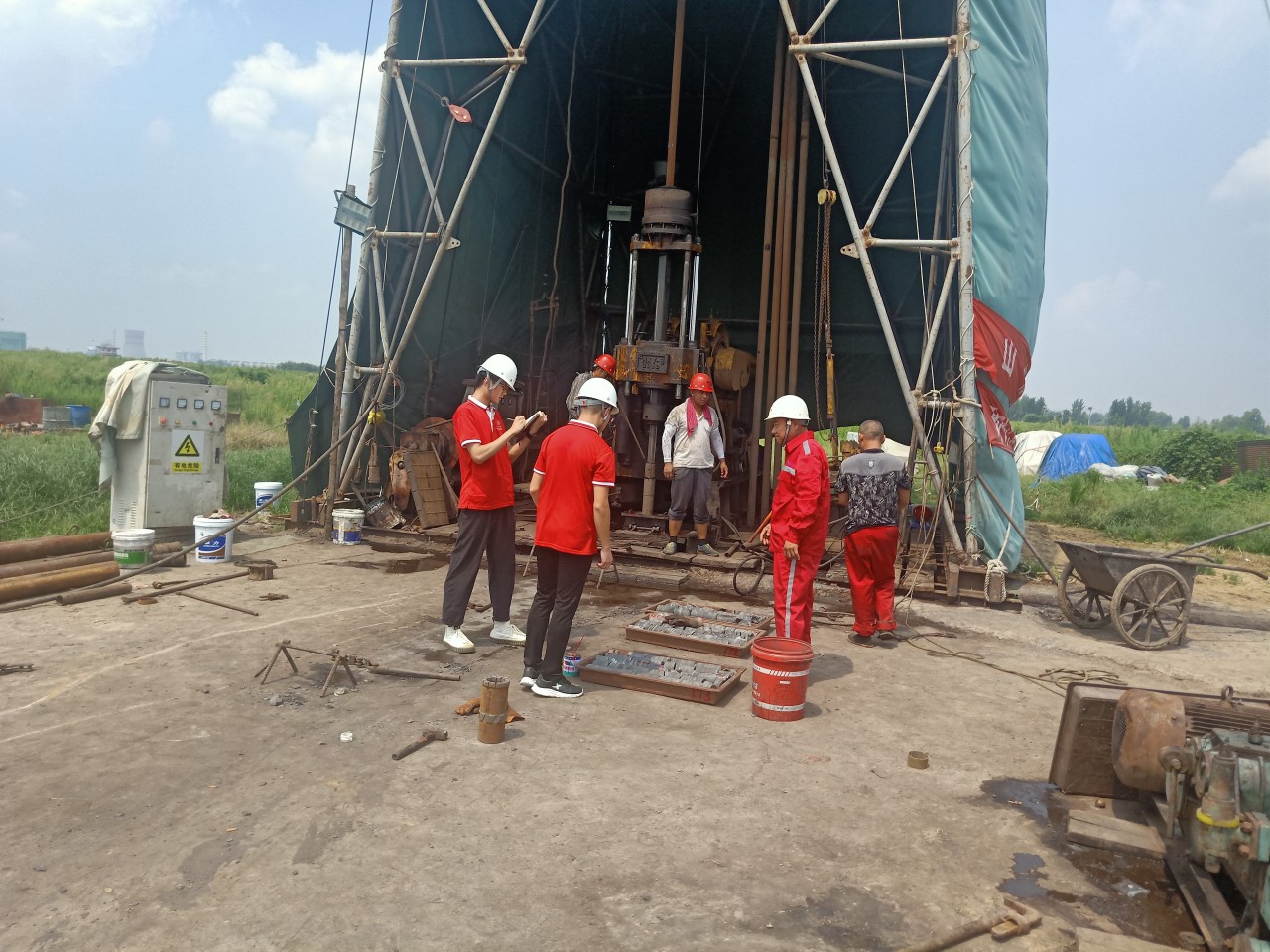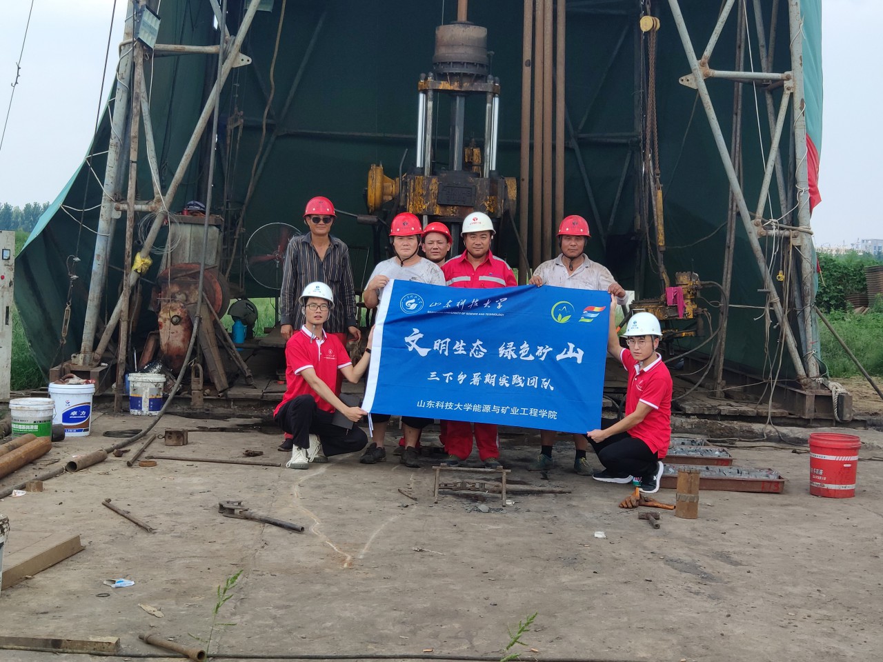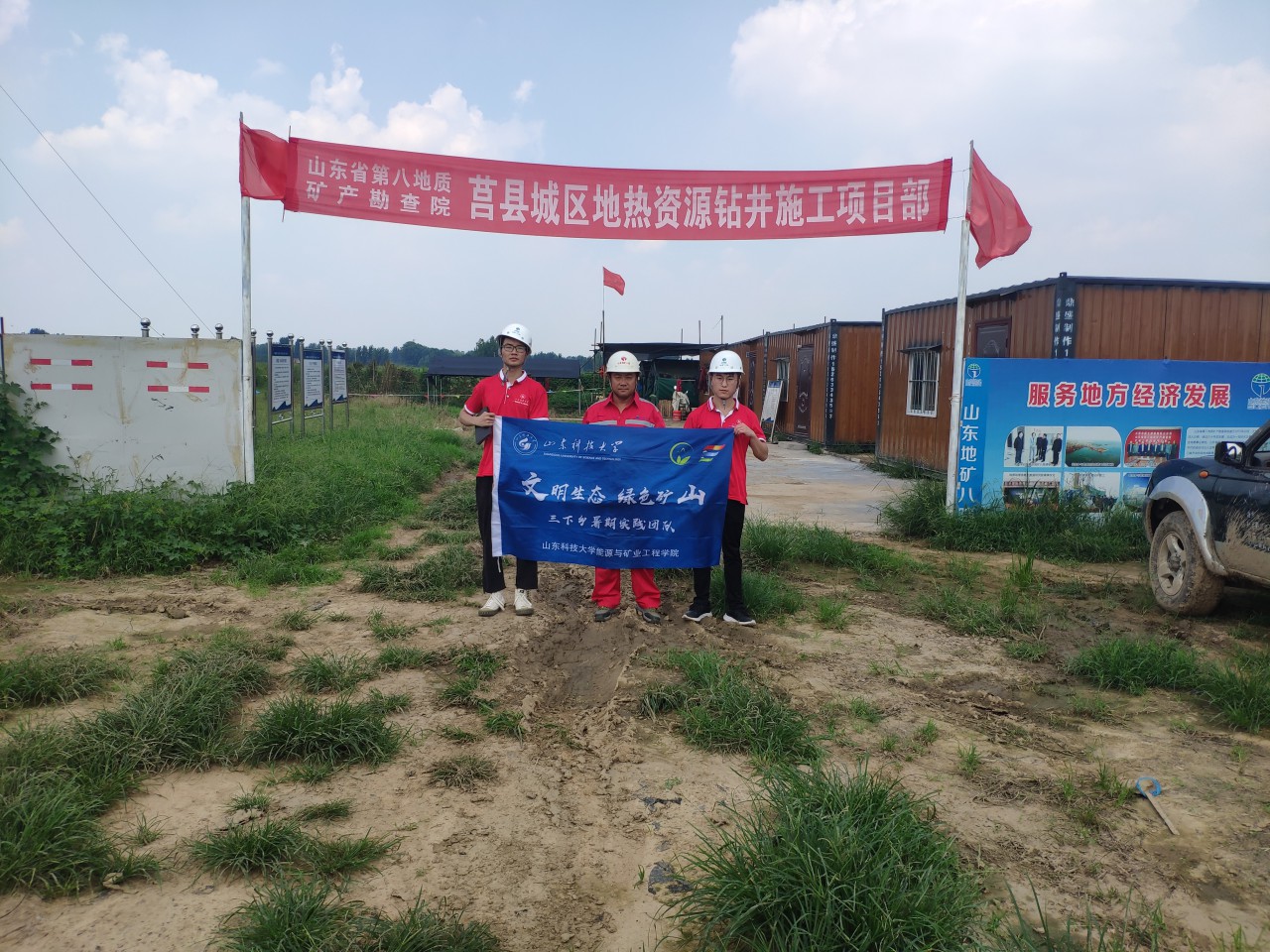 地热是绿色低碳、可循环利用的清洁能源,地热资源的勘查与开采,对减少化石能源消耗,改善空气质量具有重要意义。为深入学习资源勘探的相关知识,体会国家能源战略的发展理念,2020年8月17日,成人电影 “文明生态,绿色矿山”三下乡暑期实践团队来到山东省莒县城区地热资源调查与评价钻井施工现场进行参观调研。