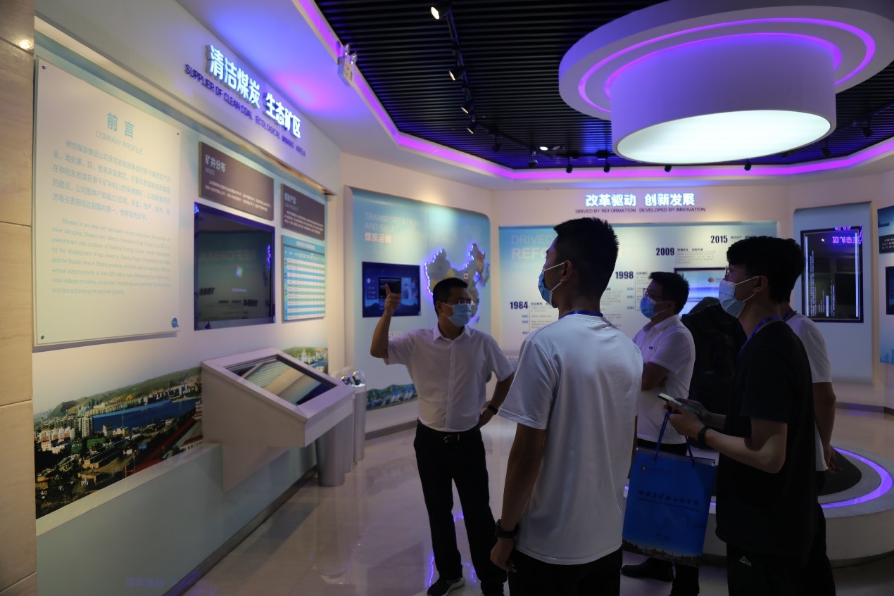 图为杨俊彩带领实践队员参观神东煤炭集团总部展厅 图为神东煤炭集团绿色矿山治理成果