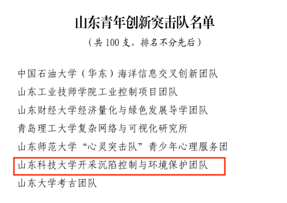 喜报:成人电影 开采沉陷控制与环境保护团队获评“山东青年创新突击队”