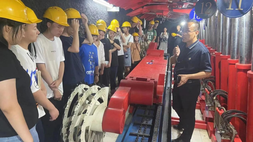 接下来,参观团参观了S1教学楼。陈军涛老师带领参观团成员们参观了综采仿真实验室、模拟巷道、采矿教学模型实验室等实验室,同时为成员们介绍了各种采矿工程有关的专业知识并在虚拟仿真实验室内播放3D视频。成员们真切了解到煤矿由开采到运输的全过程,深刻感受到成人电影