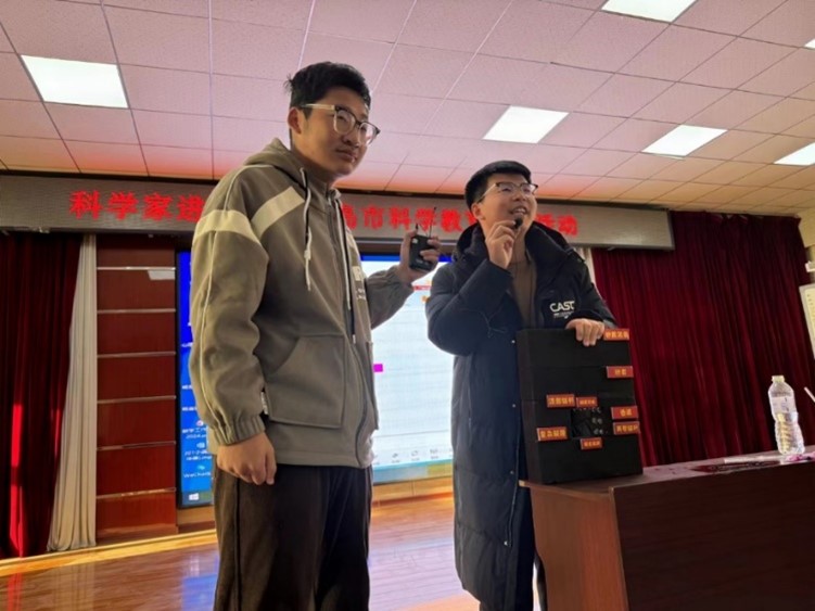 随后的实验环节中,由宣讲队成员孙嘉伟、吴金磊为现场观众展示了精心筹备的两个实验项目——牛奶与高锰酸钾氧化变色实验以及连通器实验,并邀请同学们近距离观察实验现象。最后由孙嘉伟和吴金磊给同学们展示和介绍3D打印的煤矿巷道模型。同学们踊跃参与,在亲身体验中感受科学的独特魅力。