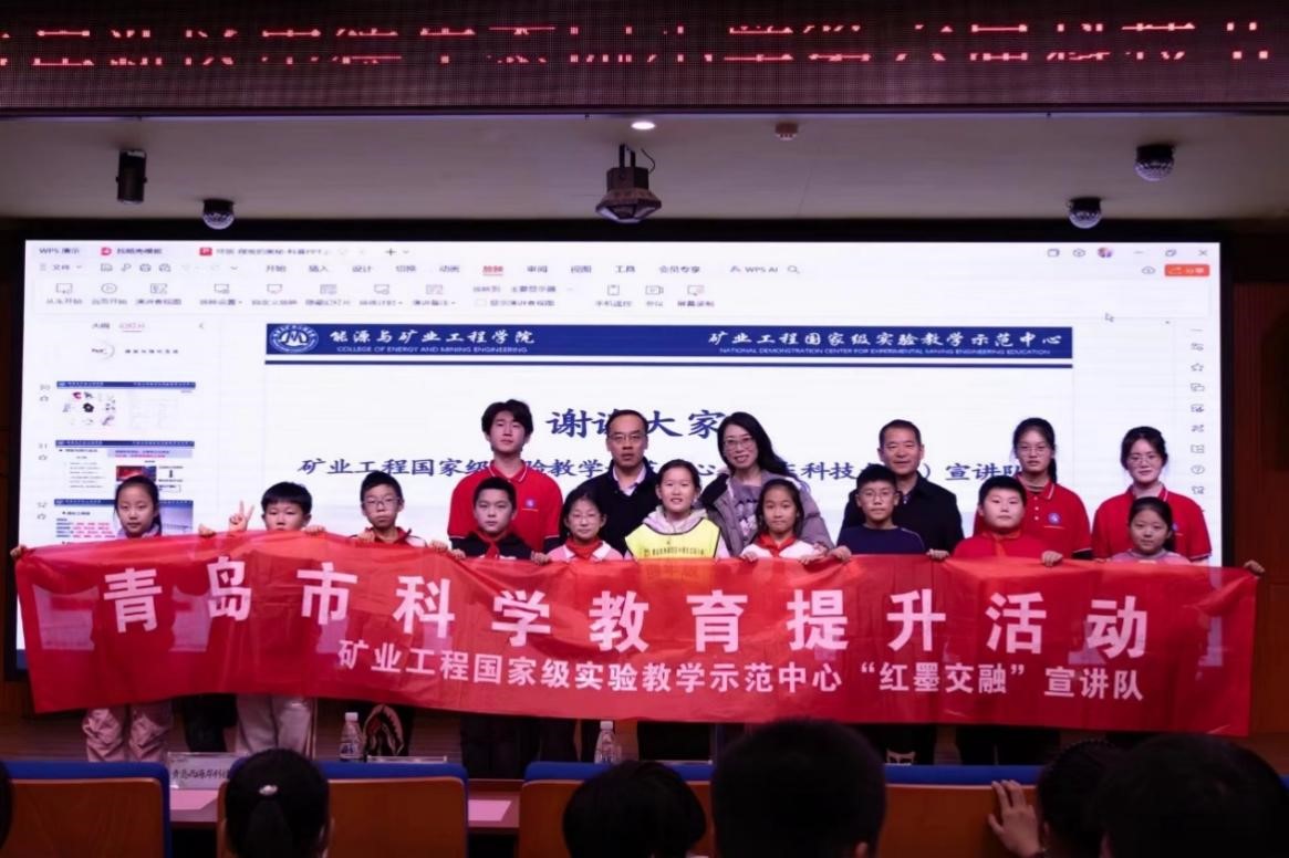 )执行主任陈军涛副教授带领“红墨交融”宣讲队成员受邀参加中德生态园小学举办的科技节启动活动,开展青岛市科学教育提升活动讲座,为全校师生带来了一场丰富多彩的知识盛宴。