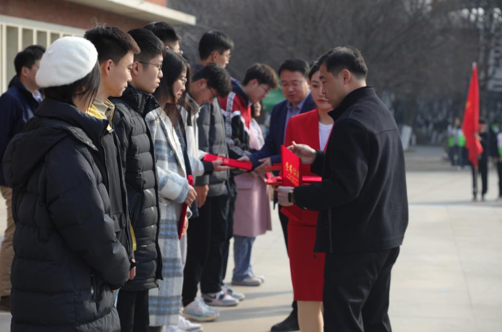 “十佳志愿服务队”颁奖,陈军涛宣读学雷锋志愿服务月活动方案,常龙宣读“传承雷锋精神,弘扬时代新风”倡议书,号召广大青年学子大力弘扬雷锋精神,积极参与到学雷锋志愿服务活动中。
