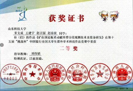第十五届挑战杯全国大学生课外学术科技作品竞赛二等奖